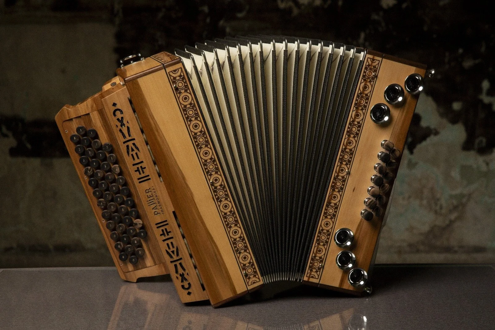 Die Pamer Harmonika ist eine sogenannte Steirische Harmonika. Diese zeichnet sich durch ihren einzigartigen Mechanismus aus, der auf dem System von Handzuginstrumenten basiert. Im Herzen der Harmonika befinden sich die Stimmstöcke und die Stimmplatten mit den Stimmzungen, die durch das Vakuum, das beim Ziehen und Drücken des Balges entsteht, in Schwingung versetzt werden, sobald man die Diskant- und Basstasten betätigt. Diese Schwingungen erzeugen den charakteristischen Klang, der die Steirische Harmonika so besonders macht.
